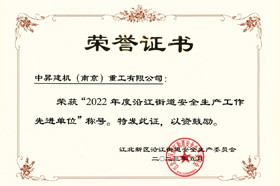 為表彰先進(jìn),進(jìn)一步推動(dòng)全街安全生產(chǎn)工作,經(jīng)街道安委會(huì)研究決定,對(duì)中昇建機(jī)(南京)重工有限公司等5家安全生產(chǎn)工作先進(jìn)單位。